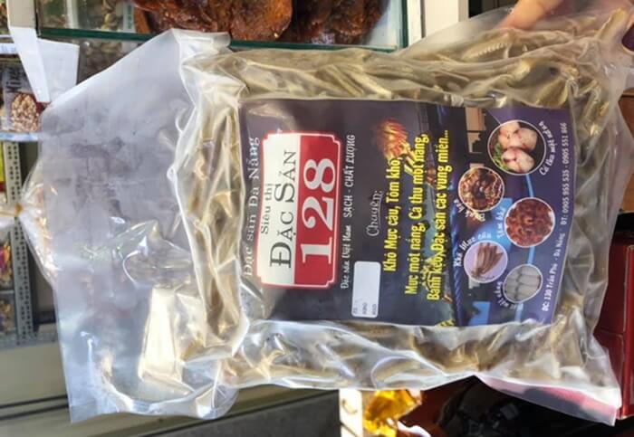 Đến Đà Nẵng đi đâu mua quà? Ghé ngay 128 nếu bạn đang ở gần khu vực trung tâm nhé. Dù diện tích không quá lớn nhưng siêu thị này có đầy đủ các loại. Nào là cá thiều khô, tôm khô, mực khô rồi hải sản tẩm gia vị, bánh kẹo, mắm dưa…